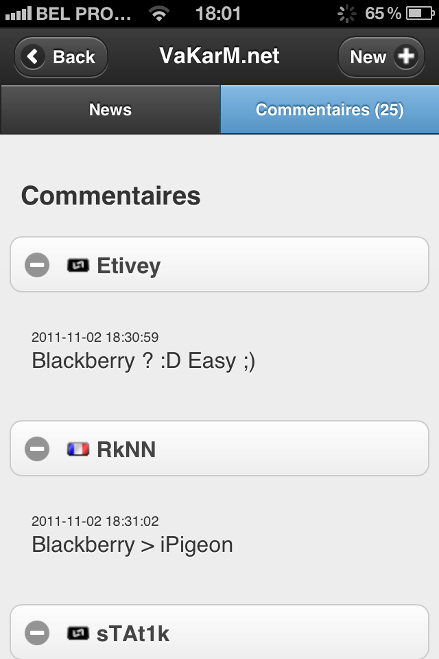 41 Dites adieu à l'ancien site mobile pas très ergonomique et proposant très peu de fonctionnalités et dites bonjour à son petit frère, développé par Julien "deStrO" Pardons. Comme l'application Android, vous aurez à votre disposition les fonctionnalités suivantes. Seules les notifications ne sont pas encore disponibles :