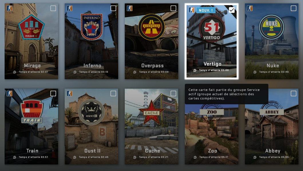30 Il y a un peu moins d'un an, Dust2 faisait son grand retour et Cobblestone partait en rénovation. Depuis, on attendait la rotation suivante dans le mappool compétitif. C'est finalement Vertigo qui remplace Cache et les fans du château fort devront attendre encore un peu pour le revoir en compétition.