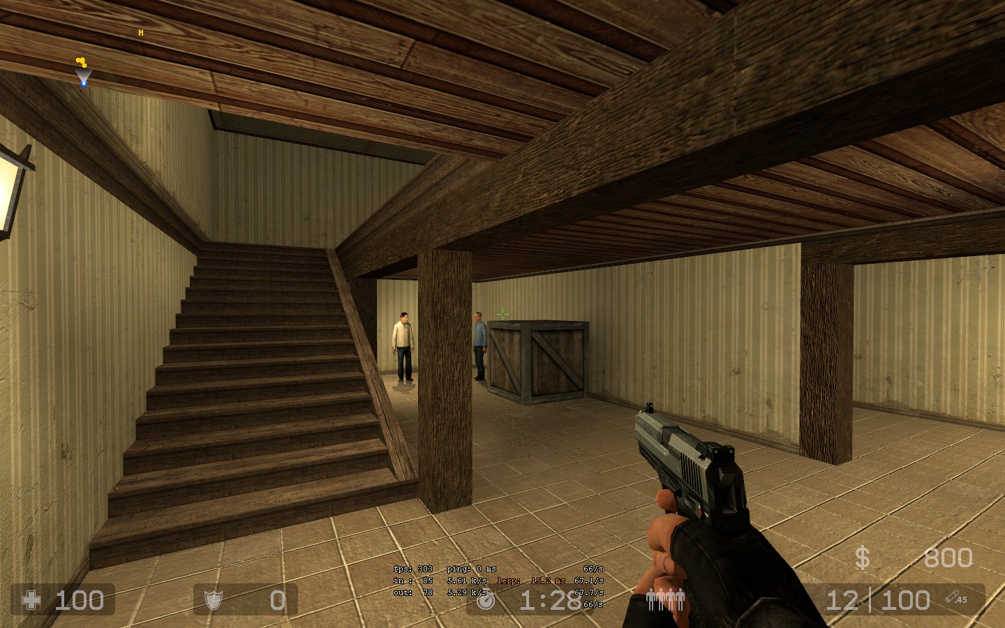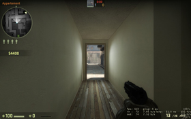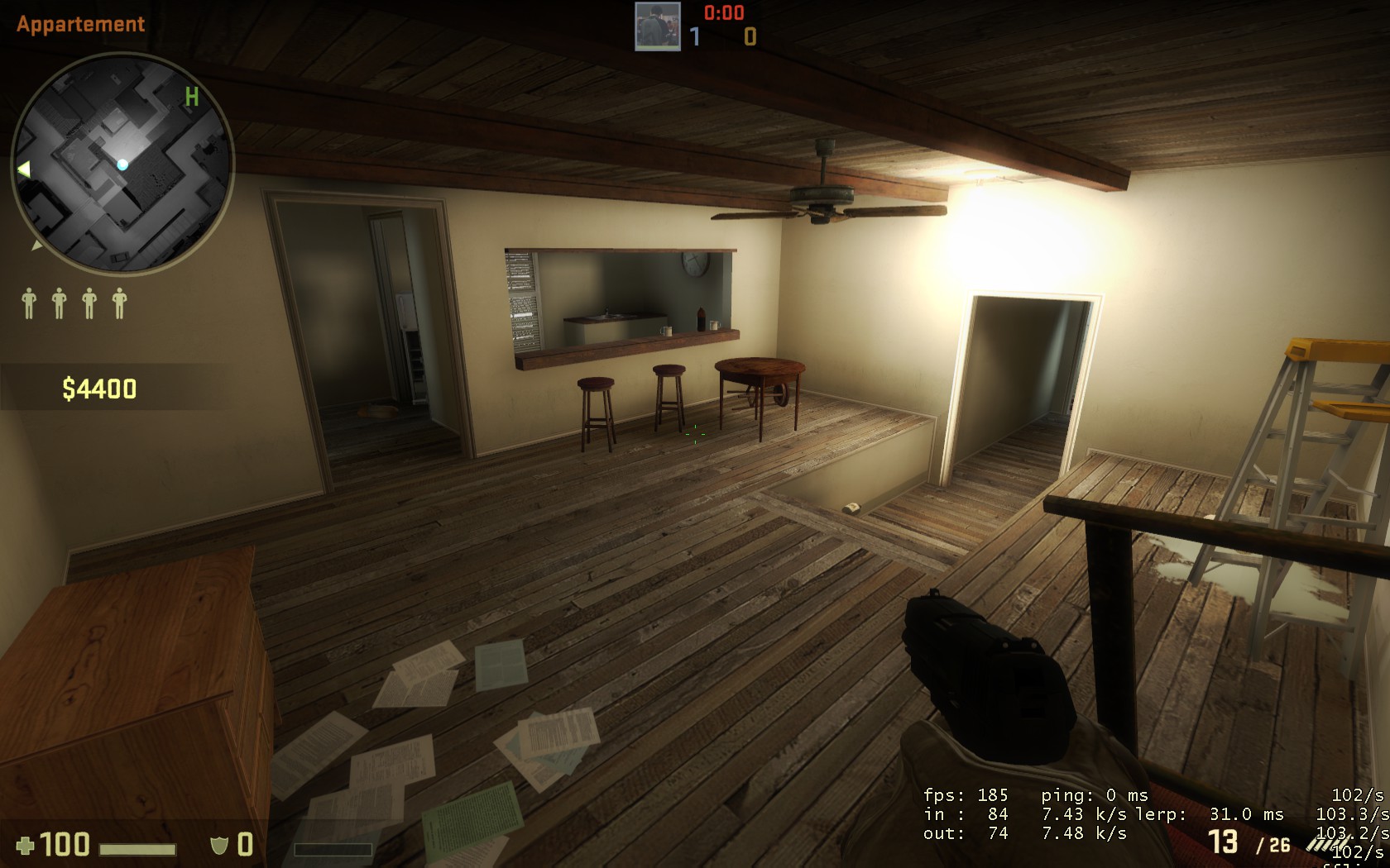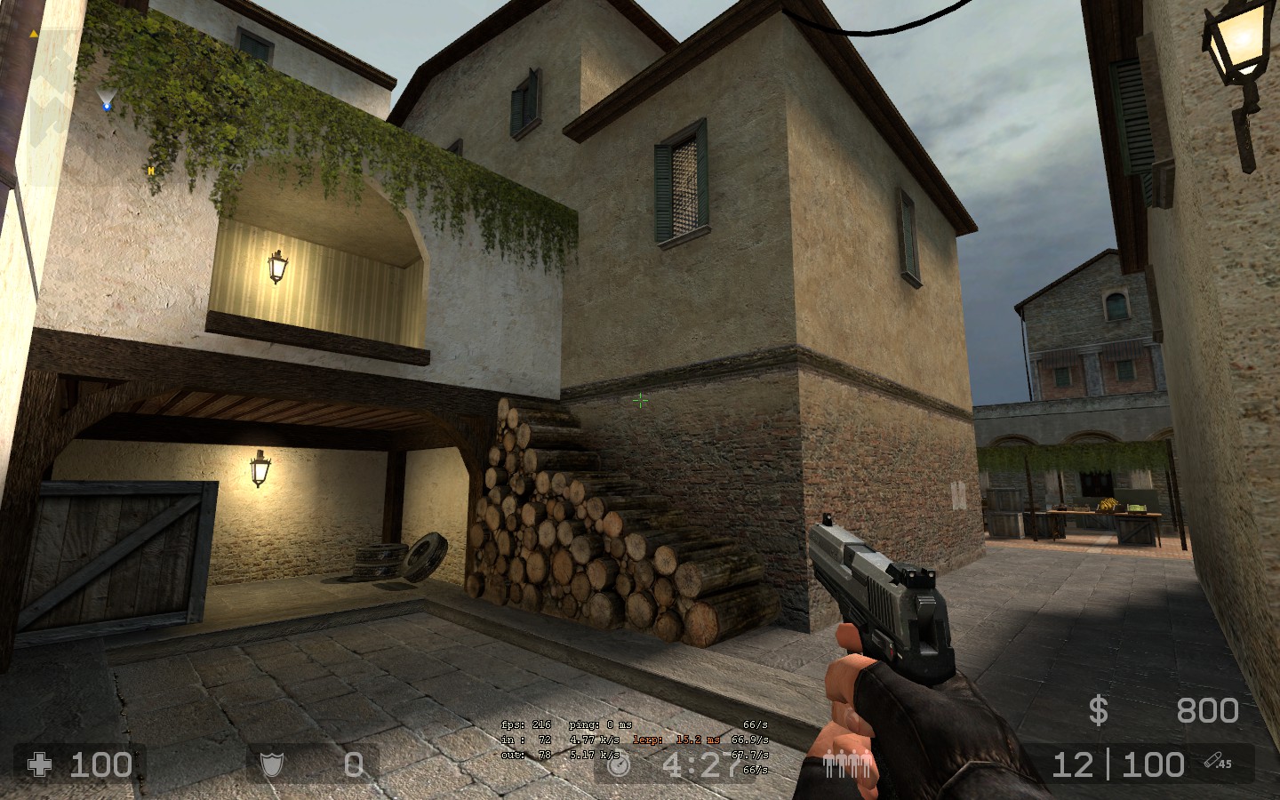 En partant à droite du spawn CT, vous devrez faire un premier choix, direction le marché ou les appartements. Qui n'a jamais été bloqué ici en FFA, à la queue leu leu en montant sur les rondins ? "Avancez les gars bordel !".