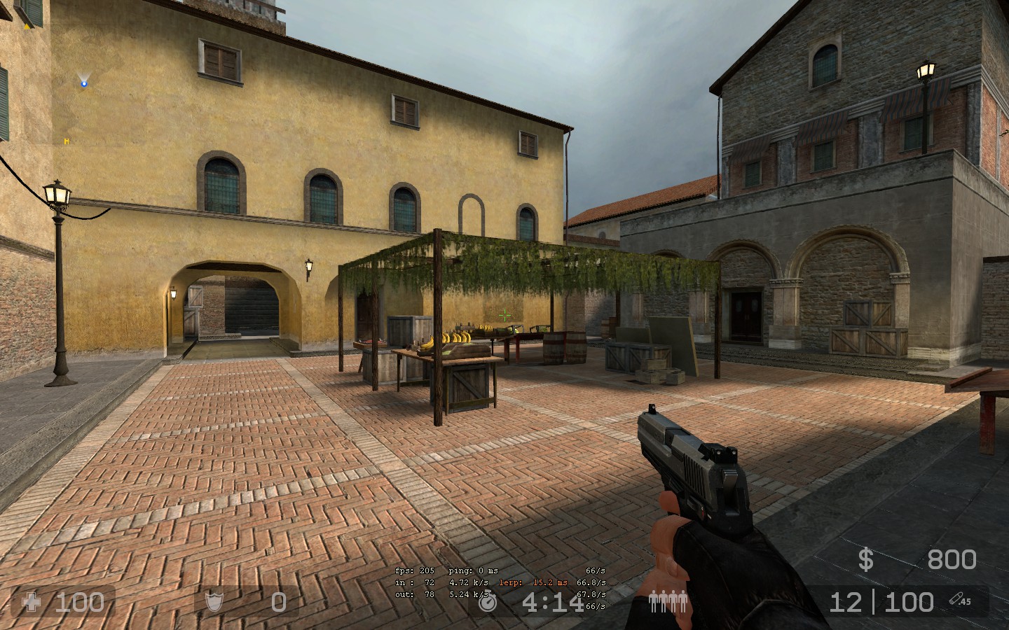 Le marché, c'est l'endroit mythique de cs_italy, là où les stuffs fusent de toute part, un point de chutte de rush où on bourrine violemment, et c'est ça qu'on aime. Pas de changement notable, le ptit passage à droite est toujours là.