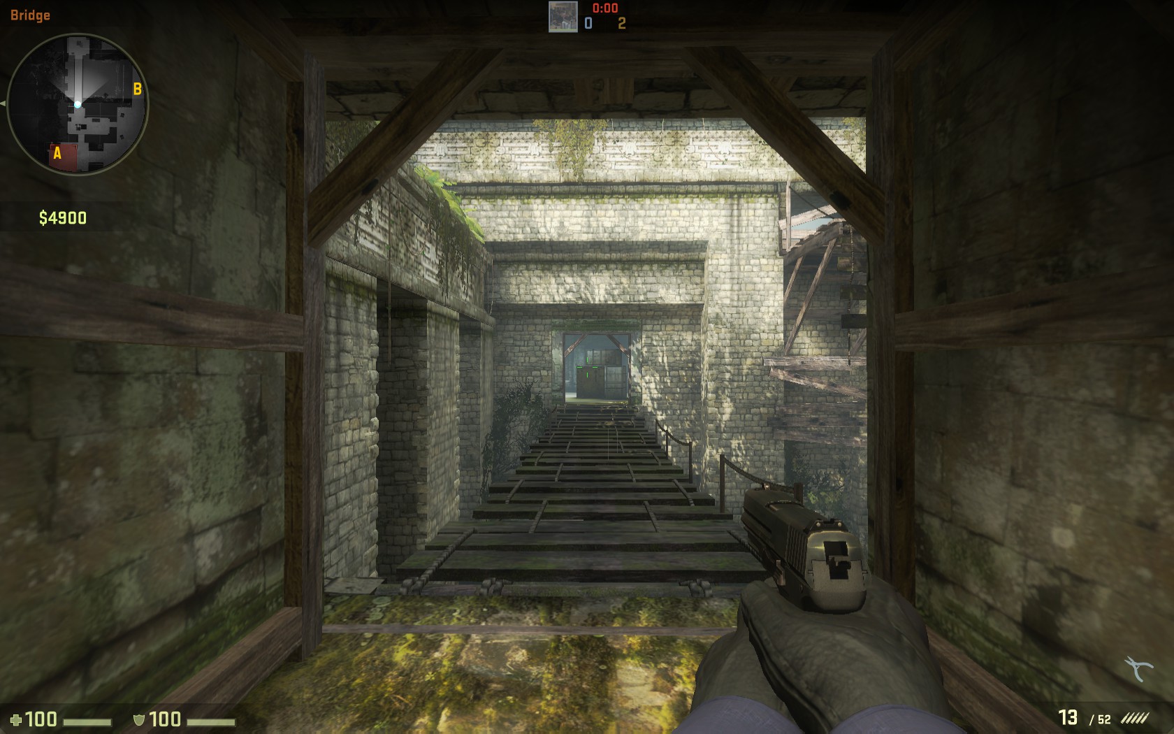 Ce pont en bois est la marque de fabrique de cette carte et il reste important de le contrôler d'une façon ou d'une autre. C'est le passage le plus rapide entre les deux spawns et sa longueur reste inchangée dans les deux Counter-Strike.