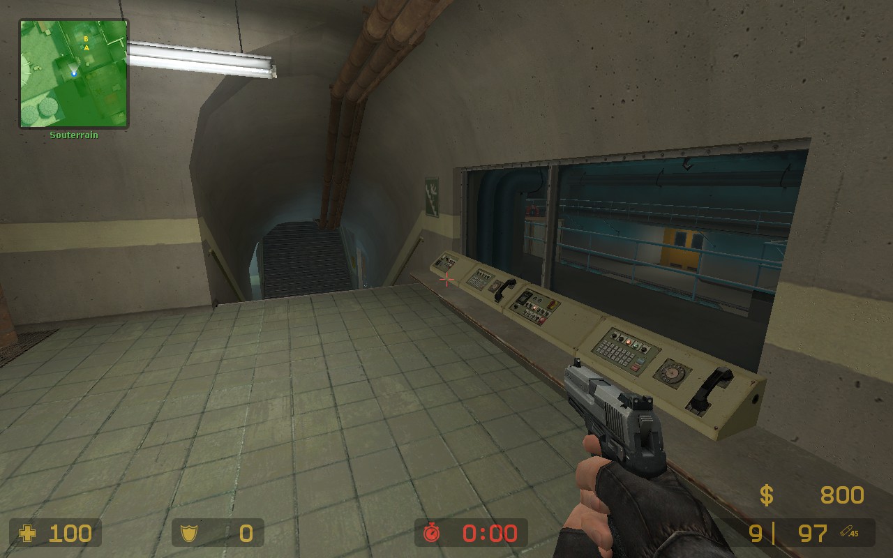 Seule pièce rescapée du bombesite inférieur, l'antitox a été amputé de son escalier menant vers le U. Il ne reste que cette petite salle vitrée qui sera l'une des rares positions pour protéger la bombe.