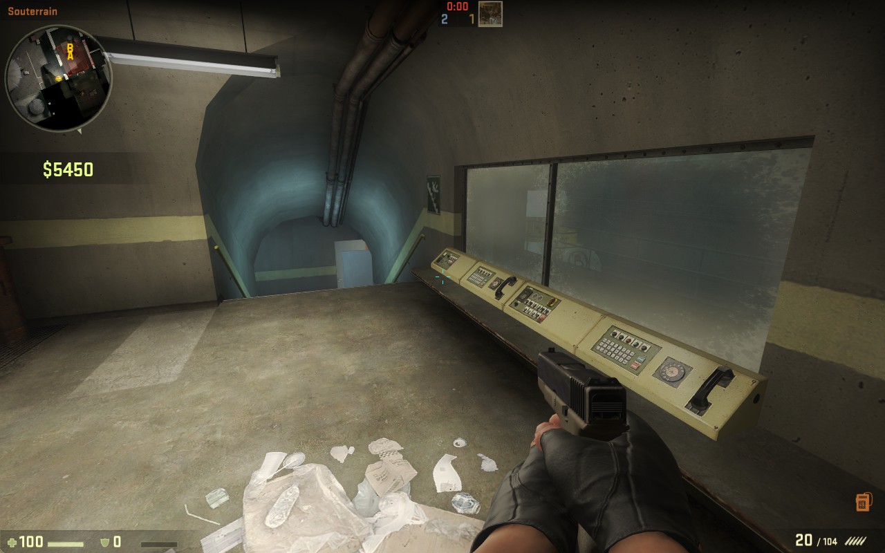 La seconde pièce composant la radio a été garnie d'objets inutiles sur CS:GO mais qui peuvent néanmoins servir pour surprendre le sniper en fond de pente. Le décalage illustré reste efficace.