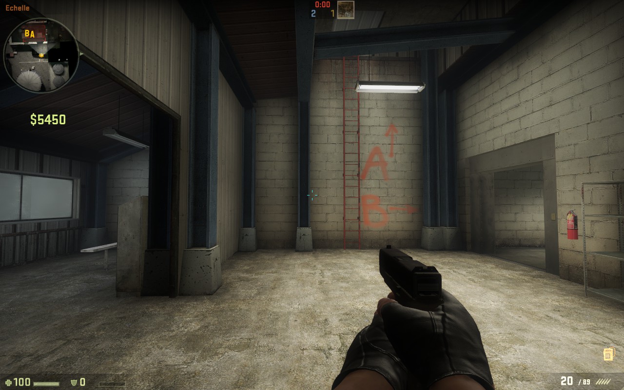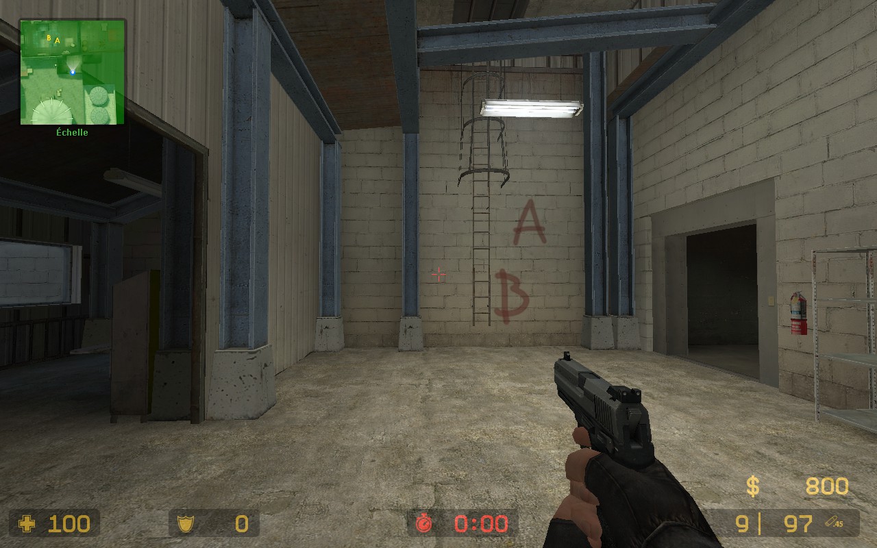 La grande échelle reste pareille sur CS:GO. Attention toutefois car il est plus facile de tomber sur le nouvel opus de Valve car l'échelle n'est pas entourée d'une cage provoquant plus facilement une chute qui pourrait vous faire perdre des points de vie.
