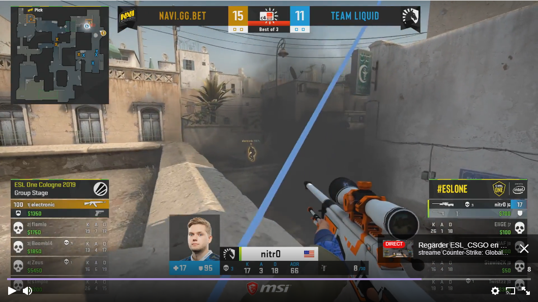 Nitro face au boost de NaVi sur Overpass : https://clips.twitch.tv/ObeseAuspiciousSkunkAliens