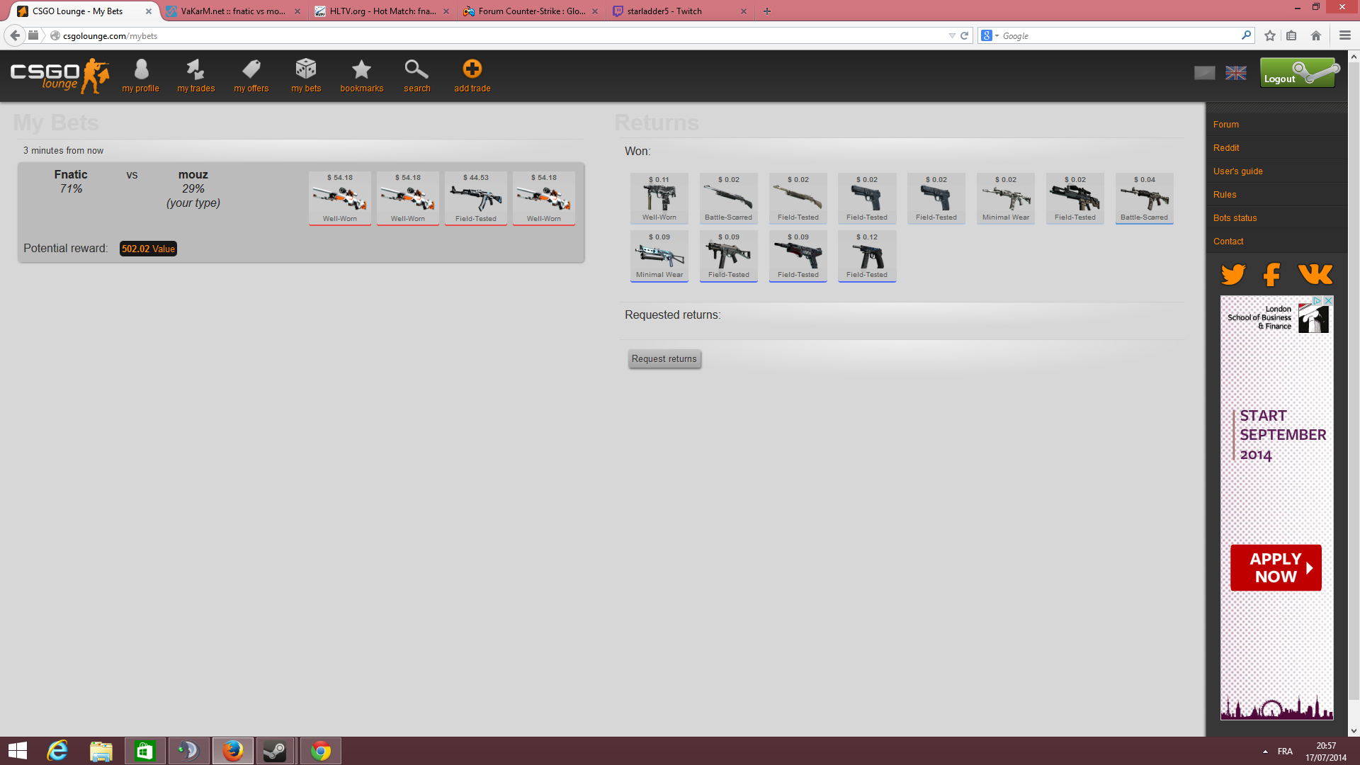 En même temps c'étais prévisible je comprend pas comment des gens on pu parier sur Mouz, je veut dire Fnatic on fait de bons résultats contre LDLC hier et LDLC on vraiment bien joué contre Navi, c'étais plutôt prévisible.