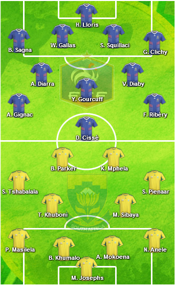 Afrique du Sud : Josephs - Ngcongoa, Khumalo, Mokoena (cap.), Masilela - Sibaya, Khuboni, Pienaar, Tshabalala, - Mphela, Parker Source : léquipe.fr